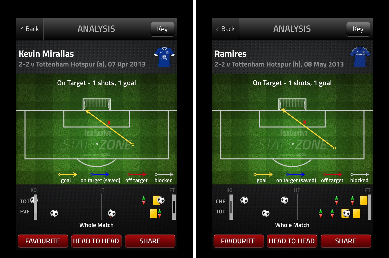 On the face of it these look like two very well taken goals, and they are. It would be churlish to suggest otherwise. But as a keeper, and an analyst you’d be looking at ways to stop such goals. Using the excellent StatsZone App we can look at the two goal in a bit of detail. The red x on the graphics shows Lloris’s positioning: