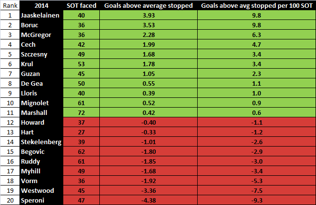 Using this we can compare individual shot stoppers to the average as we did here for the @simongleave piece for Dutch national daily, de Volkskrant. The Dutch is slightly less double there thanks to Google translate. Dutch readers can get the original here.