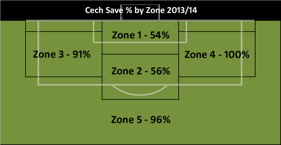 Well…the Special One is back, and, according to my Keeping Model here at Differentgame, so is Petr Cech. Apart from the high-line disaster period under Andre Villas-Boas, Cech’s numbers have been pretty good but he’s not been able to match either David De Gea or Joe Hart in recent years. Until now…