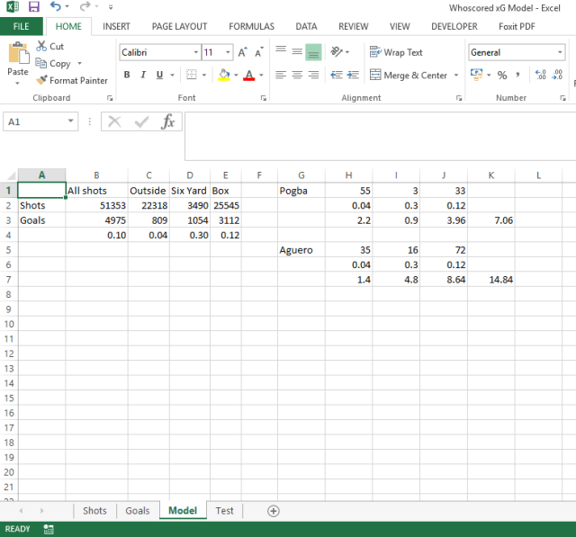 As you can see on the screenshot I’ve applied the model to the shots Pogba and Aguero have taken to get a total xG figure. Click into any player’s ‘Detailed’ on Whoscored and you can find there shot breakdown (just remember to turn the dropdown to ‘Total’ rather than ‘Per Game’)