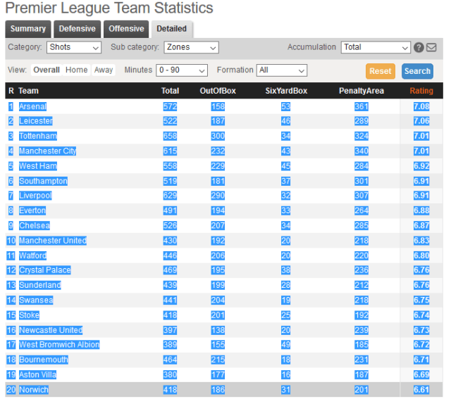 Under the ‘Premier League Team Statistics’ heading you’ll see the ‘Detailed’ tab. Click it.