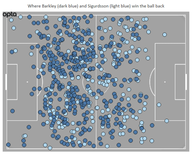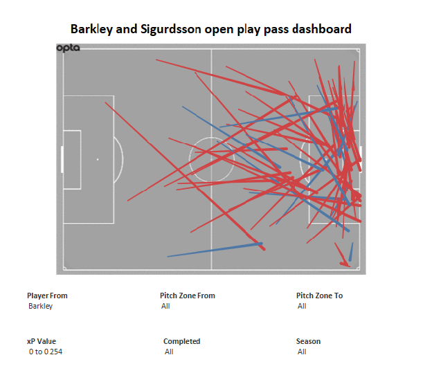 You can see Barkley there trying more vertical passes from deeper central positions while Sigurdsson is all about putting the ball in the box from out wide.