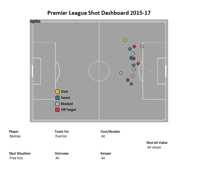 Starting with open play, 201 players over the last 2 seasons have played 1000 minutes and directly created at least 20 chances. Once sliced and diced for how good their set of created chances are, and for how many minutes they’ve played, Barkley ranks 70th and Sigurdsson is 160th.