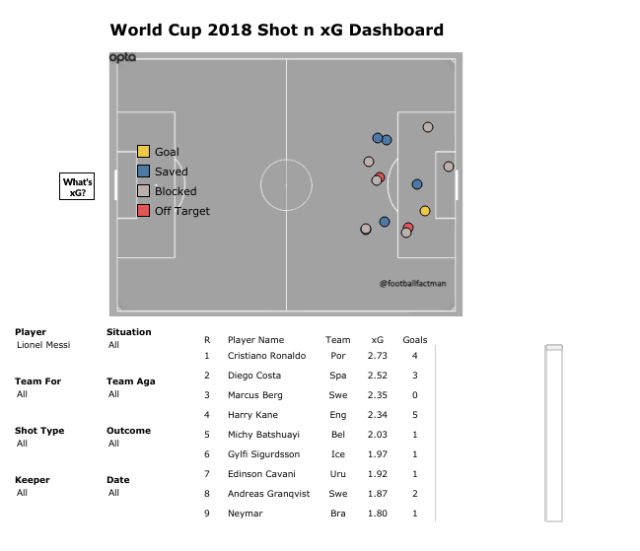 Up front, notwithstanding Messi’s woeful penalty, and brilliantly taken goal against Nigeria that anyone less human wouldn’t have made into a chance, the Barcelona man has struggled to get into good areas to shoot:
