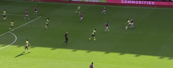 My take: Look how much Bernard still has to do to score the goal. This is not an amazing ‘assist’. I asked my model to show me similar key passes (passes that directly lead to a shot on goal) from this season. There have been two already that rate similarly.